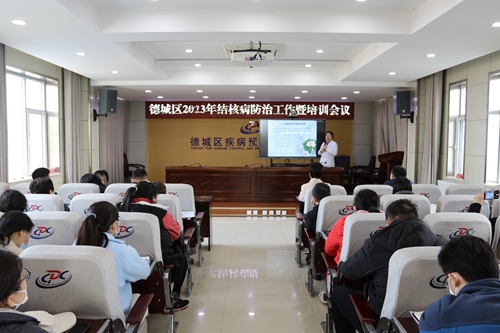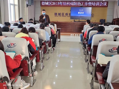 为终结结核病流行,做好全区结核病防治工作,3月20日,德城区结核病防治工作暨培训会议在我中心召开。区卫生健康局副局长董华增、德州市第二人民医院副院长穆焱成、结核病防制科科长褚洪文出席了会议,疾控中心副主任王保山同志主持会议,所属辖区内各综合医院、定点医院、镇街卫生院、社区卫生服务中心、社区卫生服务站分管领导、结防工作人员及疫情报告负责人共计50余人参加了会议。