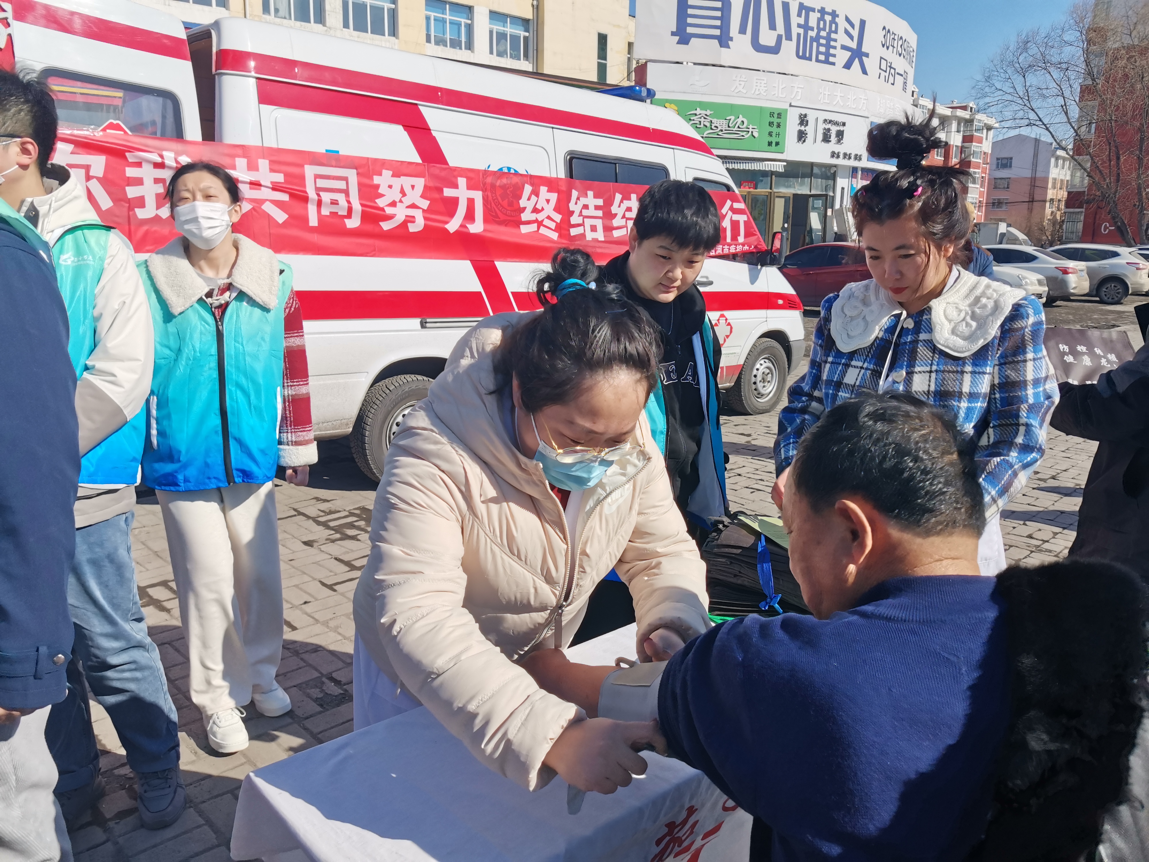 3月22日上午,市卫健委、市疾控中心、茄子河区疾控中心、茄子河镇卫生院和茄子河区东风社区卫生服务中心,联合在茄子河区惠民广场,围绕“你我共同努力,终结结核流行”宣传主题开展现场宣传活动,面向社区居民宣传结核病防治知识。在活动现场,设立了咨询台和义诊台,悬挂宣传条幅,张贴宣传海报。活动开始后,宣传台、义诊台前人头攒动,挤满了前来咨询、义诊的群众。各单位领导和结核病防治志愿者宣传员为群众介绍结核病防治知识,发放宣传册、年画、环保袋、口罩等多种宣传资料,医务人员为群众免费测量血压,并现场解答群众提问,让大家了解结核病的传播途径是什么、临床症状有哪些、国家免费政策等内容。本次活动发放结防知识宣传资料1000余份,接受健康咨询、义诊人数百余人次,取得了良好的宣传效果。