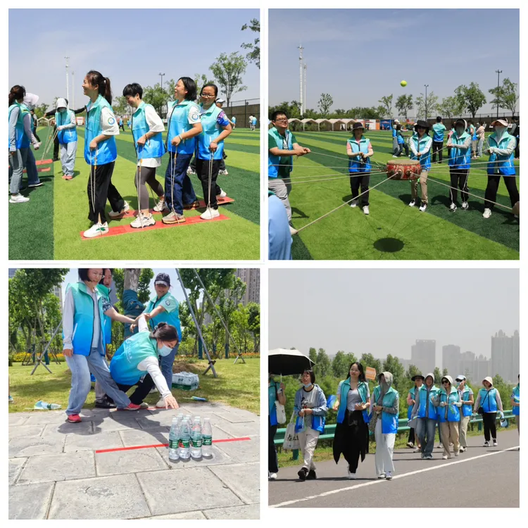 交接仪式结束后,接下来是国际5.12护士节健步走活动环节。赛事教练开场互动、专业教练带队热身,在梧桐雨公园开展铁甲战车、鼓动人心、雷区取水游戏和3公里健步走活动。