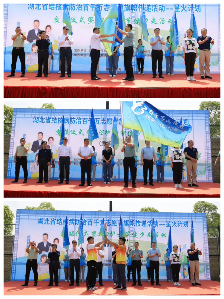 在领导、嘉宾和全体志愿者们的共同见证下,武汉市和咸宁市的领导、志愿者完成旗帜与火炬交接仪式,他们传递的不仅是旗帜与火炬,更是传递着代表健康促进和结核病防治的使命和希望。