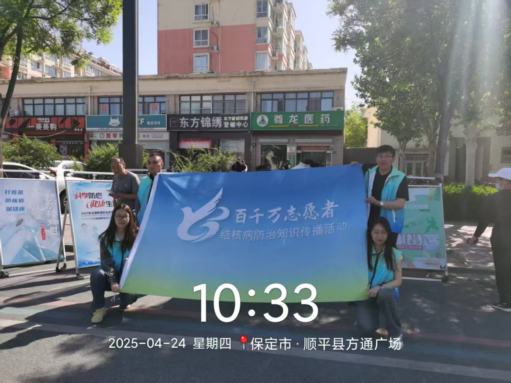 为提升公众对结核病的认知,强化儿童结核病预防意识,以全国儿童接种日为契机,2025年4月24日顺平县百千万志愿者在方通广场开展了以“接种疫苗护健康,携手防痨筑屏障”为主题的结核病防治宣传活动,