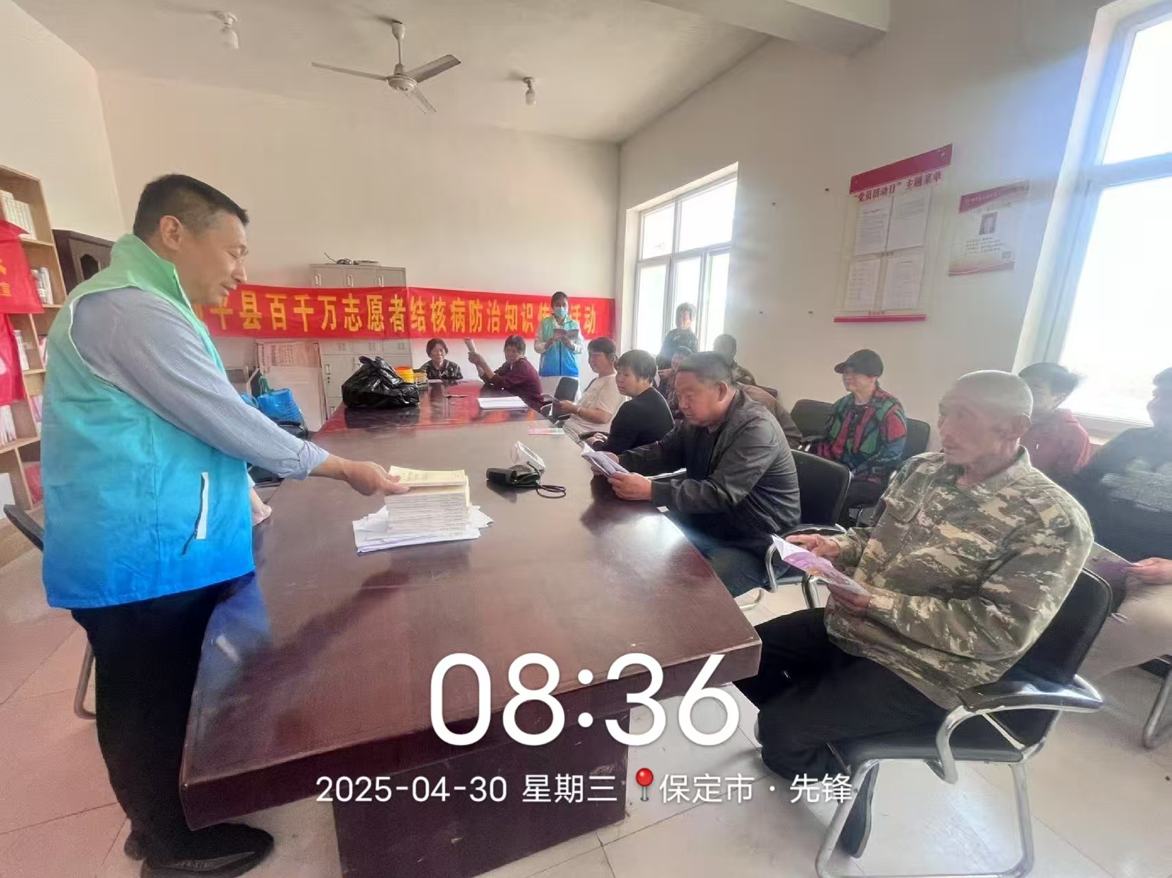 为提升村民对结核病防治知识的认知水平,增强自我防护意识,2025年4月30日,顺平县百千万志愿队走进先锋村,开展了一场内容丰富、形式多样的结核病防治宣传活动。