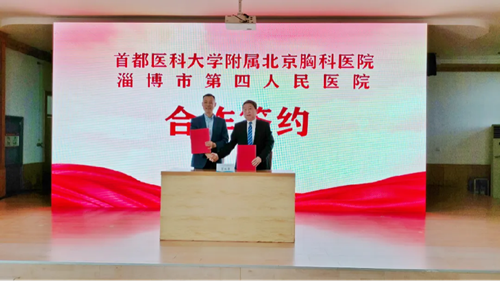 陈登国祝贺淄博市第四人民医院加入北京结核病诊疗技术创新联盟,希望医院借助平台及时了解国际国内结核病防治的最新动态和前沿技术,学习借鉴先进的管理经验和诊疗模式,进一步提升我市结核病防治的整体水平,为保障人民群众的身体健康和生命安全做出新的更大贡献。