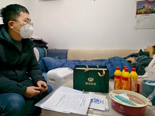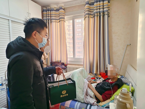 清晨的阳光刚穿透薄雾,由未央区疾控中心结防科工作人员、社区中心结防专干组成的慰问小组便已整装出发。他们手中的“关怀礼包”沉甸甸的,里面装有牛奶,还有患者必需的一次性口罩、84消毒液、酒精等防护消毒用品及防治知识宣传读本。“小袁,我们来看你了,最近服药还规律吗?”敲开患者袁XX的家门,轻声问候瞬间驱散了屋内的冷清。今年31岁的袁XX于2025年12月确诊肺结核,且其身患尿毒症10余年,需长期透析。疾病的折磨让这个年轻人整日躺在沙发上与制氧机为伴,慰问小组一边了解他近期的治疗情况,一边耐心叮嘱:“天冷也要记得开窗通风,饮食要清淡些,多吃点鸡蛋和蔬菜补充营养,天气好的时候多晒晒太阳,要对治疗有信心,有任何不舒服随时给我们打电话。”小袁眼角泛起泪光:“谢谢你们还惦记着我,来看我,心里暖和多了。”