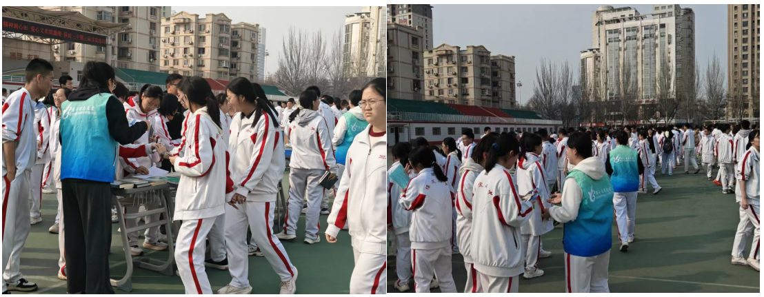 在保定市第二十一中学,志愿者利用课间时段在教学楼前设立互动科普展区,通过图文展板、趣味问答和宣传折页,向中学生生动讲解结核病传播途径与预防措施,重点强调“勤通风、戴口罩、强体魄”等核心知识,活动于3月18日开展,覆盖师生300余人次。