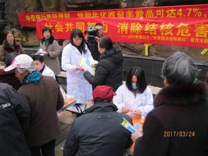 自我省结核病防治三位一体工作进入常态以来,各级结核病定点医疗机构都参与到了3.24宣传活动中来。南通在大型商业中心万达广场举行大型公益宣传及义诊活动。活动现场悬挂宣传主题横幅,播放大型沙画宣传片,摆放数十张图文并茂宣传展板,设置8张咨询台,由南通市第六人民医院结核病临床专家坐诊,现场答疑解难。同时不间断的宣传“结核病防治核心知识”,共发放各类宣传画、宣传册、宣传物品近万份。现场气氛热烈,效果达到预期。