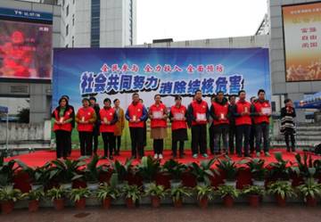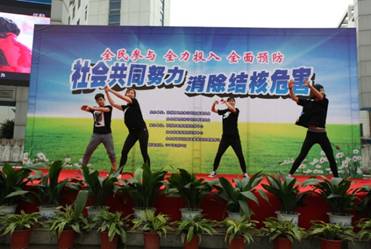 苏州市 3.24大型宣传咨询活动在太仓市中心广场开展。由出席本次宣传活动的各级领导为结核病防治知识宣传志愿者代表颁发聘书并向流动人群代表发放健康支持工具包,感谢志愿者们为结核病防控所作出的奉献, 随后由结核病防治知识宣传志愿者们带来精彩绝的节目表演。来自英派斯健身馆教练们的尊巴健身操伴随动感旋律点燃现场热情,东港戏曲社带来接地气的太仓话说唱《结核病防治很要紧》,太仓市第一人民医院的结防医生们带来创意情景剧《滚蛋吧!结核君》,嬉笑嗔怒中传播了防痨正能量党和政府的高度重视。