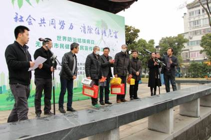 无锡市卫计委和疾控中心在锡山区开展了大型流动人口结核病防治公益宣传活动,市卫计委领导代表市疾控中心疾控党支部向特困病人代表发放了爱心捐款和营养品,并充分肯定了疾控支部全体党员不仅用他们精湛的业务技能搞好结核病防治,还积极为结核病经济困难家庭献爱心的善举、大爱无疆的医者仁心。