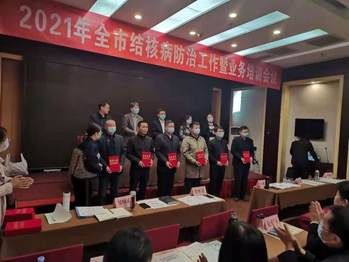 会上济宁市疾控中心主任梁玉民对2020年度全市结核病防治工作完成情况进行了总结,并安排部署了2021年全市结核病防治工作任务;对2020年全市结核病防治工作先进单位和先进个人进行了通报表彰,我市疾控中心、市人民医院荣获“山东省‘十三五’结核病防治规划实施先进单位”;大束镇卫生院、北宿镇卫生院、千泉社区卫生服务中心荣获“山东省‘十三五’结核病防治规划实施先进基层单位”;米绍娟、杨乃云、宋于法等8名同志荣获“山东省‘十三五’结核病防治规划实施先进个人”。