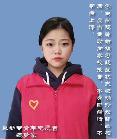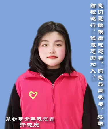 我们是结核病志愿者,你我共同参与,终结结核流行,诚邀您的加入。(阜幼专青年志愿者 许晓庆)
