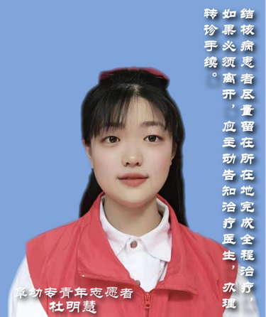 结核病患者尽量留在所在地完成全程治疗,如必须离开,应主动告知治疗医生,办理转诊手续。(阜幼专青年志愿者 杜明慧)