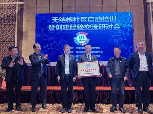 随后,刘剑君副主任代表中国疾病预防控制中心将“无结核社区示范试点”牌匾授予项目试点代表咸宁市第二医院。