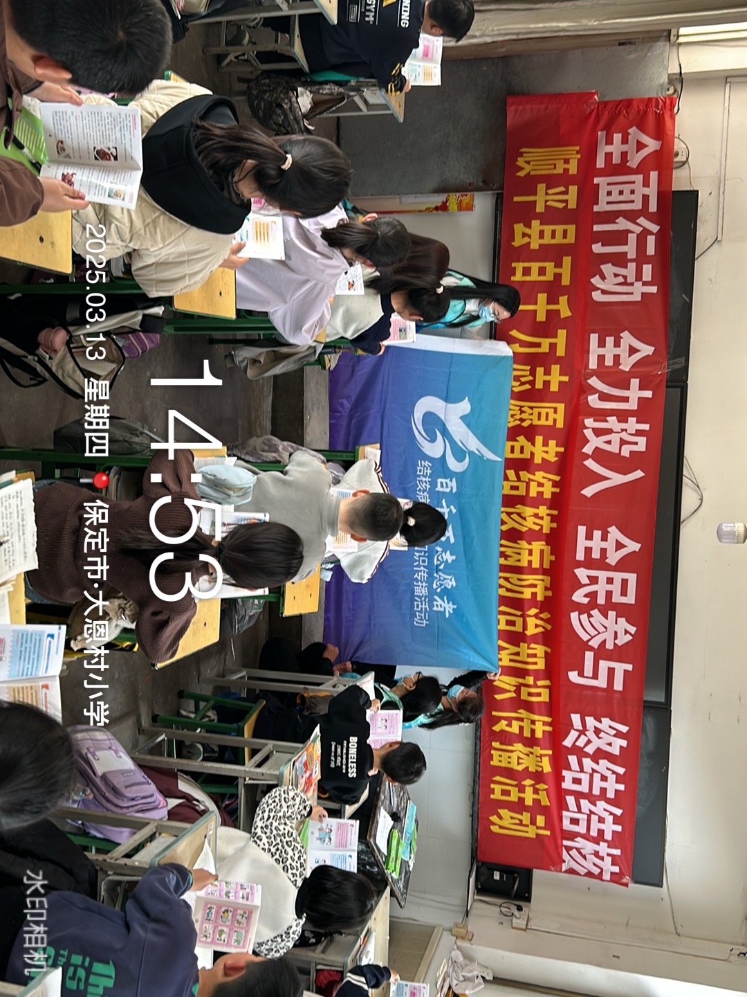 在3.24世界防治结核病日来临之际,顺平县百千万志愿者走进大恩村小学,开展结核病防治讲座,为师生健康筑牢防线。