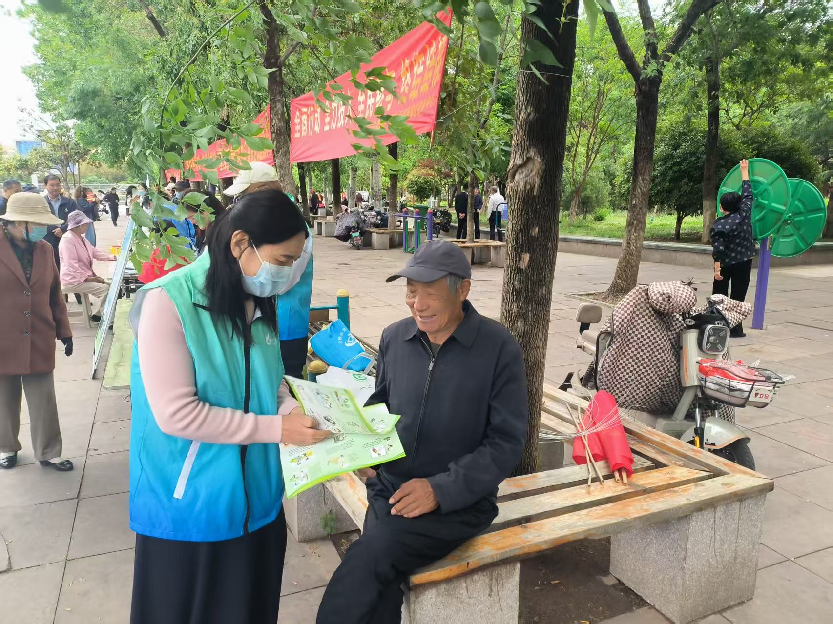 活动现场志愿者同时开展了结核病防治知识宣传,通过悬挂横幅、摆放展板、设置咨询台和发放宣传资料等方式,向群众详细讲解了结核病的防治知识及国家的惠民政策,倡导群众提升健康素养,共享健康生活。
