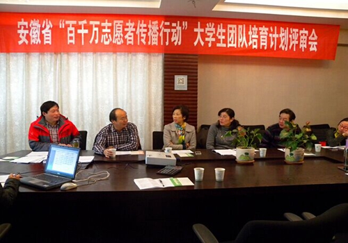 2015年11月30日,来自安徽省防痨协会科普专业委员会的10名专家汇聚合肥望江宾馆,本着认真负责的态度,公平公正地对来自安徽省13个市疾控中心、健康教育所和社团组织推荐的30多个“安徽省百千万志愿者结核病知识传播行动”大学生志愿团体的计划书进行仔细评审,现场打分,最终评选出一等培育计划4名、二等培育计划12名和三等培育计划10名,入围的26支安徽省百千万志愿者结核病防治知识传播行动大学生志愿者团体将分别获得1万元、5千元和3千元的资金支持。这标志着“安徽省百千万志愿者结核病防治知识传播行动大学生志愿者团体培育计划”正式开始。