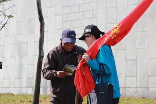 当日早上8点,参加活动的60余名志愿者们在滕州市结核病防治所院内集合后,沿杏坛东路、学院路、北辛路边徒步边向群众发放结核病防治知识宣传材料,到达北辛植物园后,又绕行植物园两周向园内群众宣传结核病防治知识。